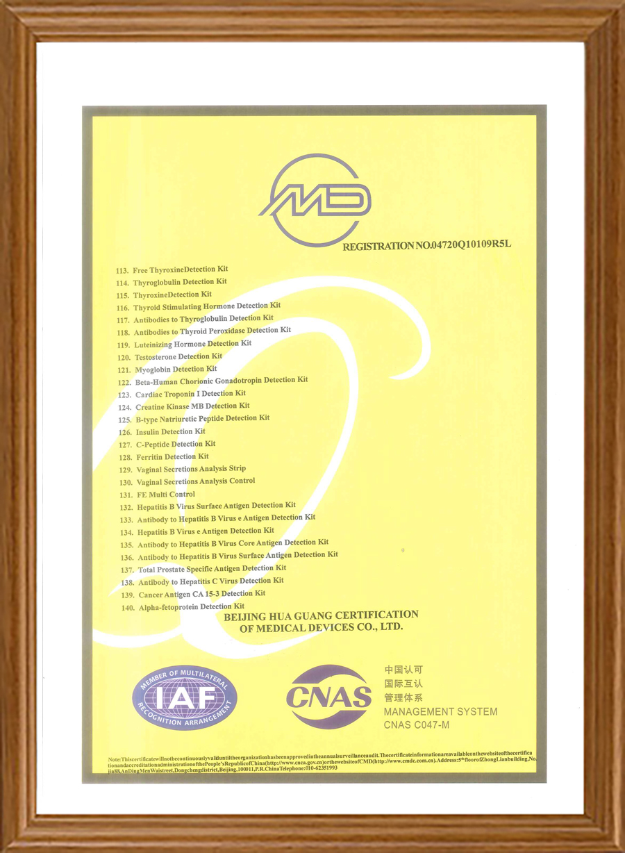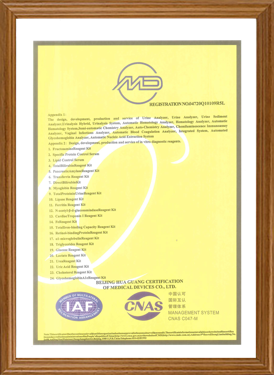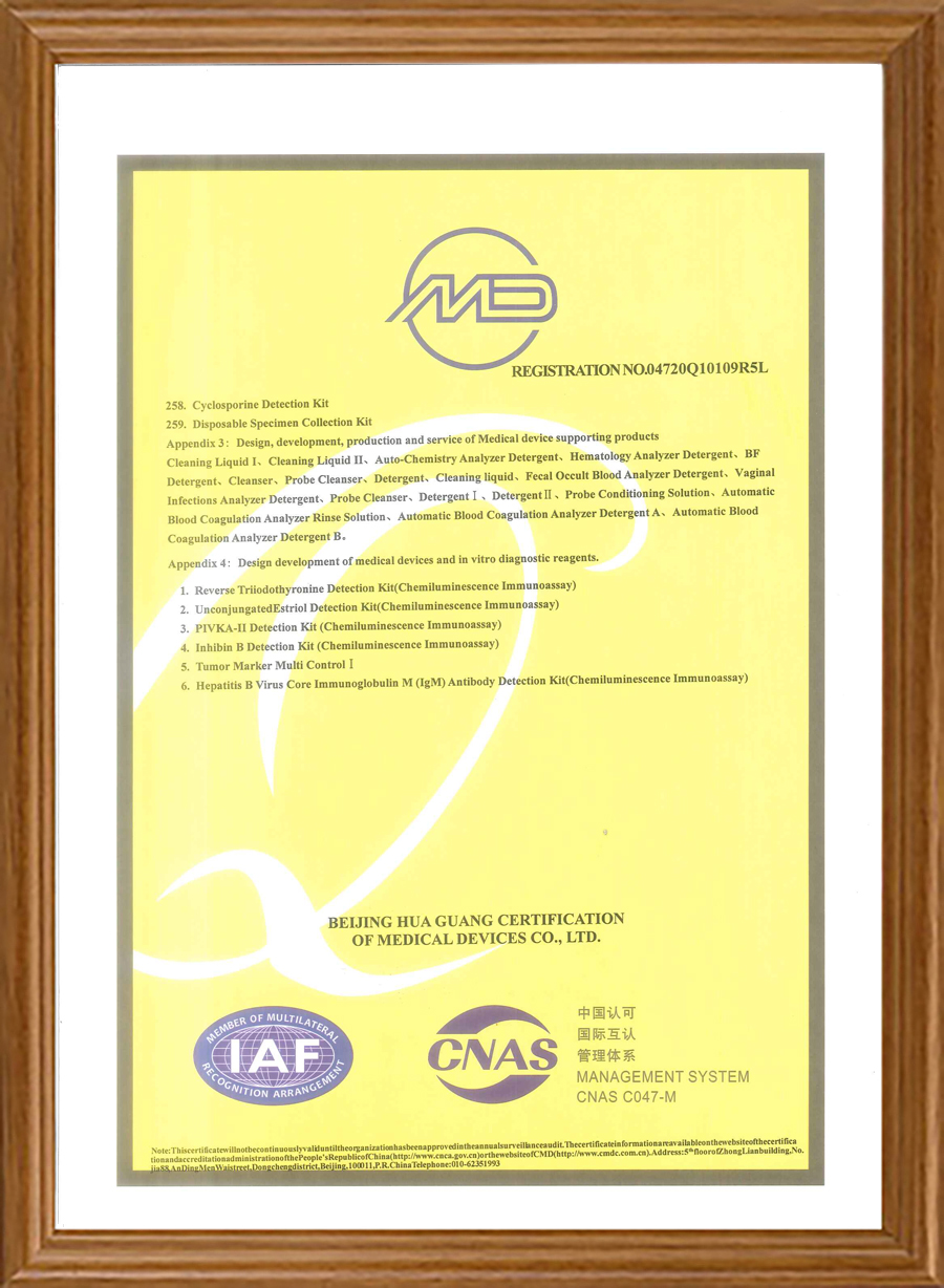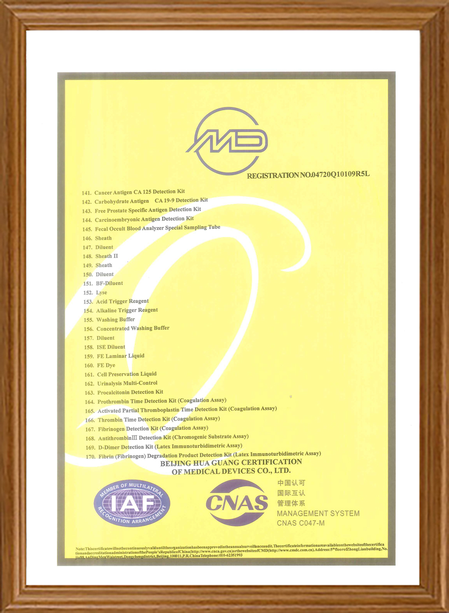 Наши продукты имеют сертификаты CE, часть продукции также прошла сертификацию FDA. Мы прошли программу внешней оценки качества NGSP, RIQAS и CAP. Наша система качества сертифицирована по стандартам ISO 13485, ISO 9001 и QC080000.
