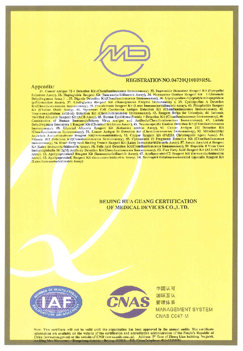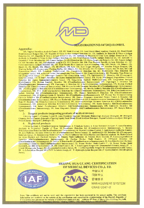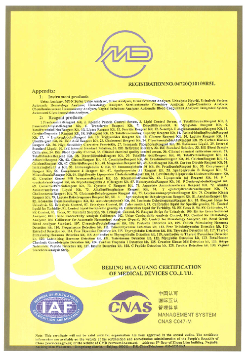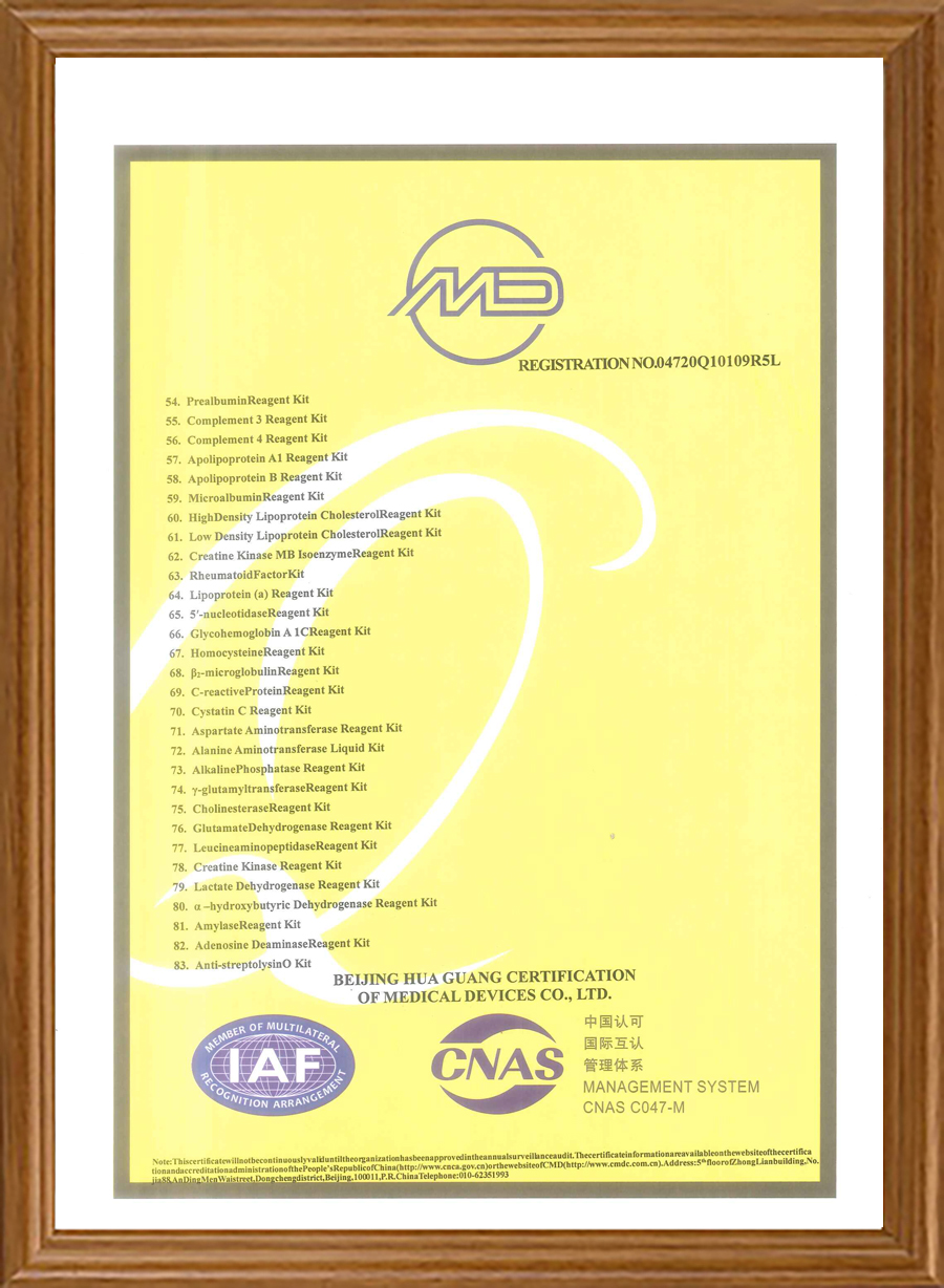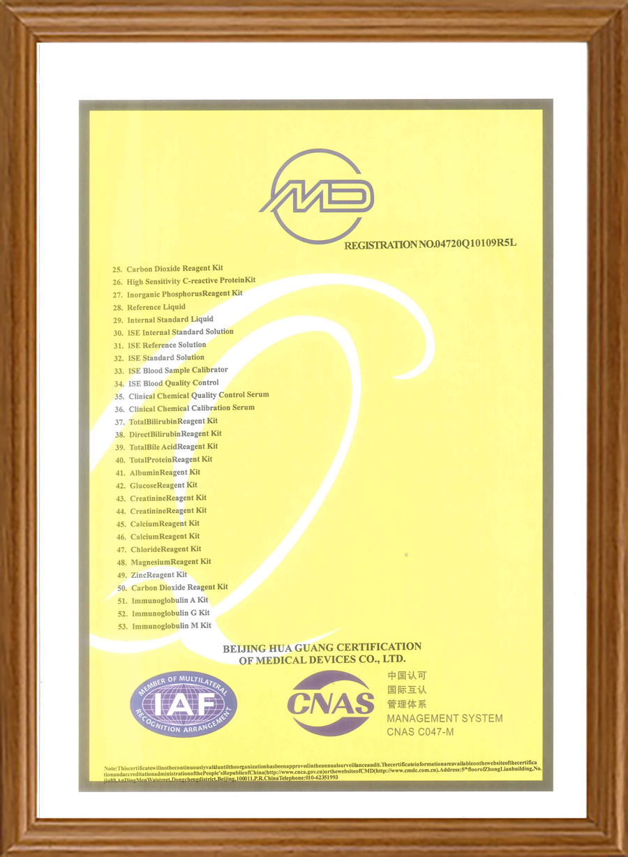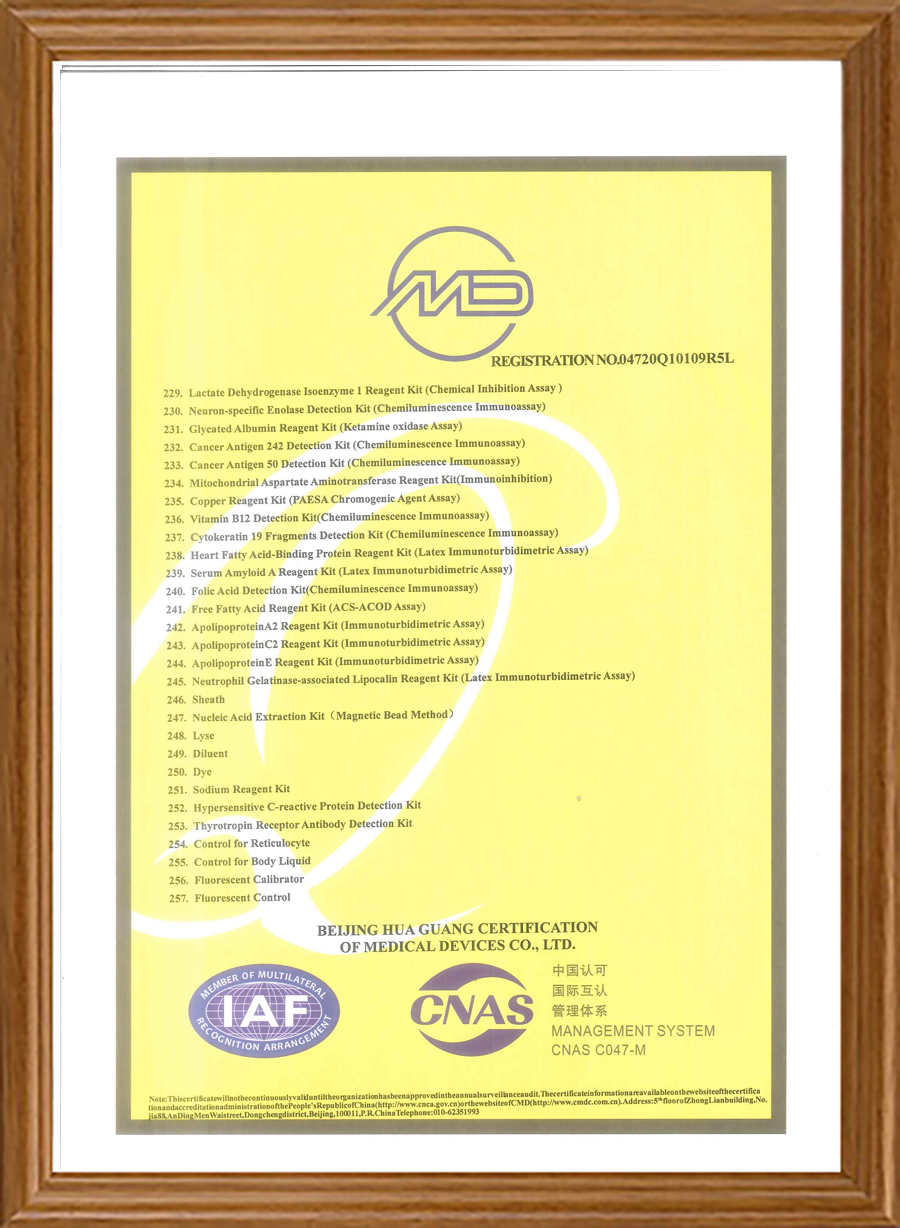 Наши продукты имеют сертификаты CE, часть продукции также прошла сертификацию FDA. Мы прошли программу внешней оценки качества NGSP, RIQAS и CAP. Наша система качества сертифицирована по стандартам ISO 13485, ISO 9001 и QC080000.